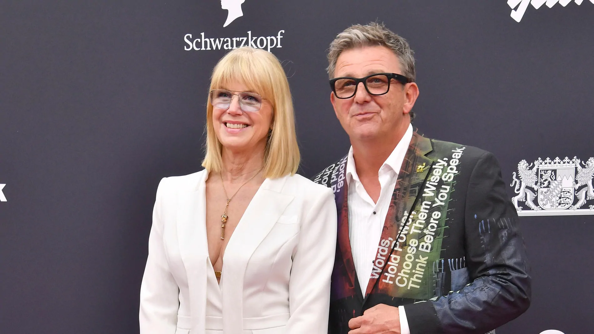 Mit einem breiten Lächeln läuft “Bergdoktor”-Darsteller Hans Sigl an der Seite seiner Frau Susanne am Donnerstagabend (13. November) über den Roten Teppich der 77. Bambi-Verleihung in München. Sein buntes und mit diversen Statement-Sprüchen bedrucktes Jackett fällt trotz der vielen glitzernden und breiten Roben um ihn herum sofort auf.