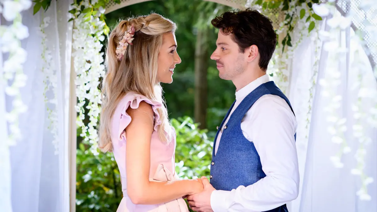 Kilian (Anthony Paul) verspricht sich beim Gelübde mit Larissa (Anna Karolin Berger, v.r.). Bild: ARD / WDR / Christof Arnold