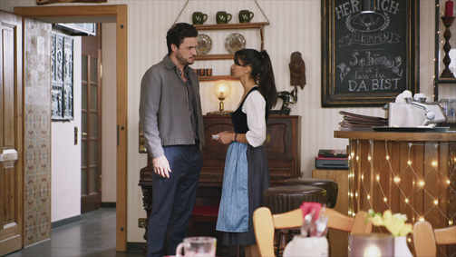 Kann Sarah Fabian jemals wieder vertrauen? | ©Sat.1/Screenshot Nach seinem Entzug kehrt Fabian nach Wiesenkirchen zurück, entschlossen, um Sarahs Liebe