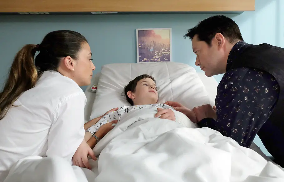 Arzu (Arzu Bazman) und Philipp (Thomas Koch): Sohn Oskar (Leonard Scholz) verletzt sich beim Spielen, bei Max wird ein Hüftschaden diagnostiziert.
