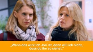 Nachdem Jori verschwunden ist, engagiert Patrizia einen Handlanger, um herauszufinden, ob Benedikt ihn möglicherweise entführt hat. Der Mann kommt bald mit schlechten Nachrichten zu ihr: Im Wald wurde eine Leiche gefunden, auf die Joris Beschreibung passt. Stella, die bei dem Gespräch dabei ist, sagt sofort, dass sie die Leiche identifizieren will. Aber Patrizia entgegnet, dass sie das selbst tun möchte, und zwar allein. Aber Stella kann Patrizia davon überzeugen, sie mitzunehmen. Und so treten die beiden Frauen den schweren Gang in die Pathologie an. Diese Szene ist oben im Video zu sehen.